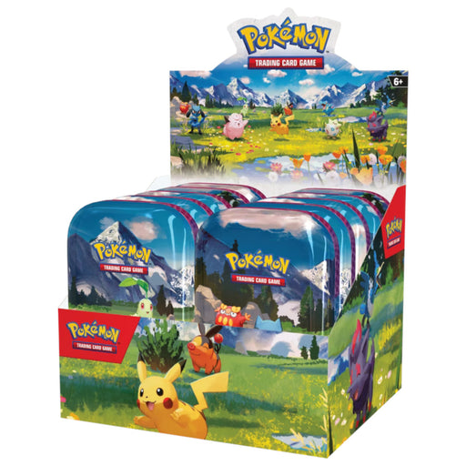 Only 1 left!Each display 1 of each of the 151 Mini Tin designs (for a total of 10). Each tin contains 2 booster packs, 1 metallic coin, and a Pokémon art card....